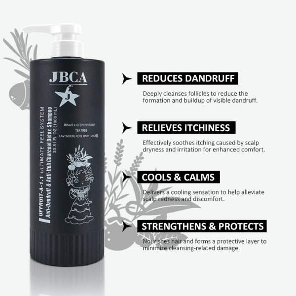 The Anti-dandruff & Anti-itch charcoal detox shampoo is formulated to gently cleanse the scalp while targeting visible dandruff, itchiness, and irritation. Powered by charcoal, seaweed, bisabolol, and vitamins B3 and B6, it removes buildup, calms redness, and refreshes the scalp without stripping essential moisture.