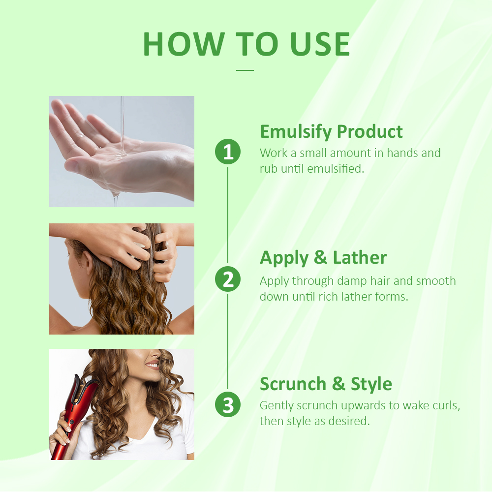 - Apply from scalp to ends after shampooing with a curl-friendly shampoo.