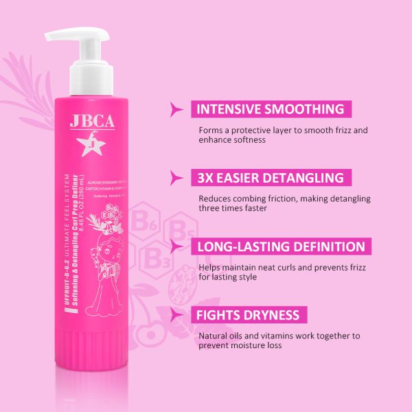 The softening & detangling curl prep definer is scientifically formulated for all curl types to create a soft, smooth, and manageable texture. Infused with sweet almond, rosemary, peppermint, and castor oils, along with vitamins B3, B5, B6, C, and E, plus cherry extract, it improves combing ease by up to three times compared to untreated hair while maintaining smoothness.