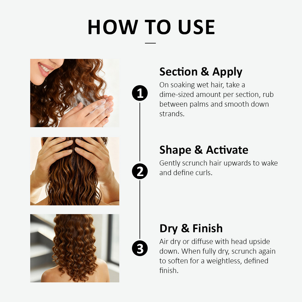 Enhances natural curl patterns for bouncy, well-formed curls that look healthy and defined all day.